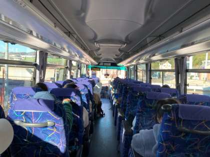 出発式を終え、バスに乗り込みました。 ジブリパークへ向かいます。