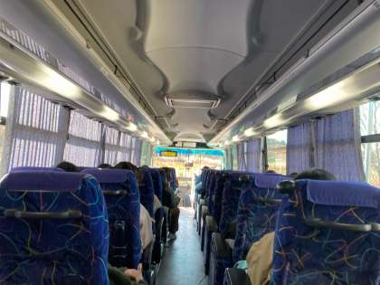 予定より少し早めにバスで学校に向かっています。下校は、通常通りになります。