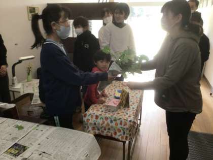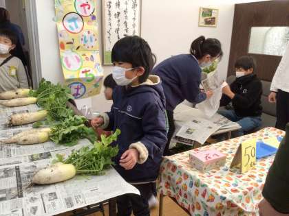 7・8・9・10組 あっという間に完売!「やさいいちば」 公開日 2023/12/14 更新日 2023/12/14 各学年から 「やさいいちば」は毎日大盛況! 販売開始前からお客さんの列ができるほど。 最後は、2本で50円の商品が一つ でもお客さんは二人。 接客を担当していた子が悩みに悩み、 二人で分けていただくことに。 大きい方、小さい方をそれぞれ30円、20円で 購入していただきました。 お客さんをがっかりさせまいと 一生懸命考える姿とても素敵でした。