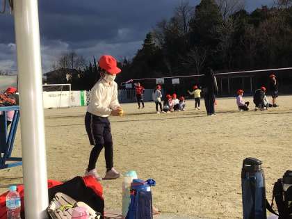 ボールと仲良くなる活動を選手と一緒に行いました。