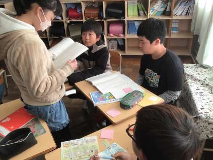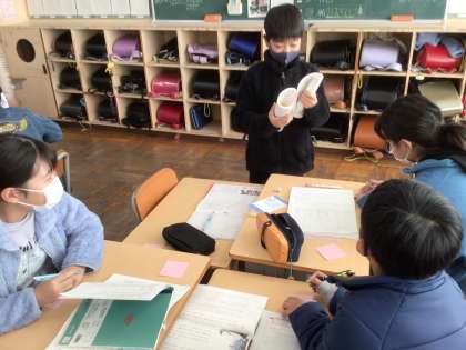 「大造じいさんとがん」で心に残った場面を朗読し、良いところを伝え合いました。