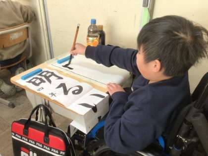 特別支援学級の子ども達も真剣に清書用紙に臨みました。