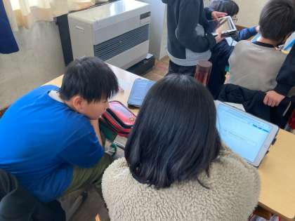 漢字一字で、今年の目標を立てました。 レタリングやデザインに目を向けて描く子も多くいました。