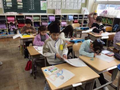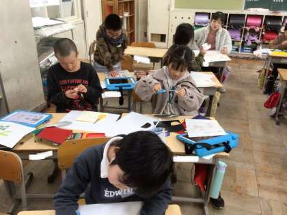 紙版画を行いました。自分のなりたい夢をテーマに考えて作りました。