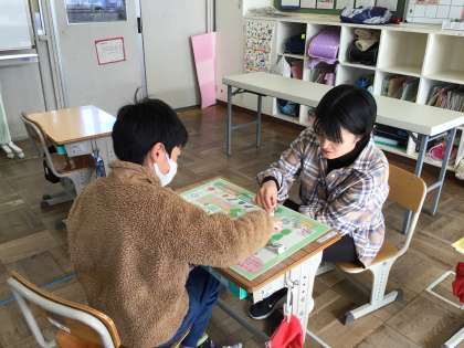 すごろくゲームを使った自立活動を行っています。
