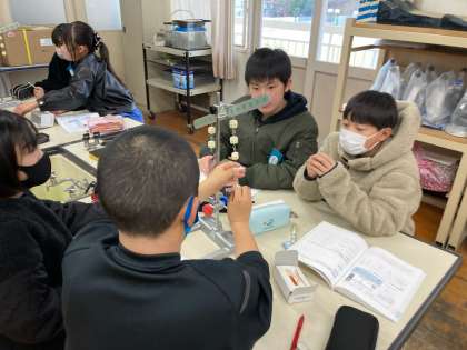実験用のてこを使って、つりあう条件を調べました。