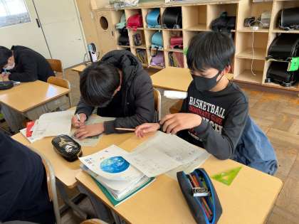 6年 国語 パート練習2 公開日 2024/01/23 更新日 2024/01/23 各学年から 卒業式の合唱のパート練習をする関係で、パートごとでの授業の時間があります。国語では、卒業文集の下書きを進めています。