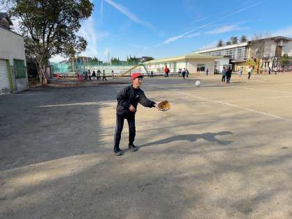本校にも大谷グローブが届きました。6年生から順番に、休み時間に使用できるようになっています。