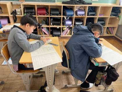 6年 算数 一斉テスト2 公開日 2024/01/24 更新日 2024/01/24 各学年から 一月の一斉テストがありました。今回のテスト範囲は6年生で学習した内容全てになっていて、一年間の復習を兼ねてのテストとなりました。