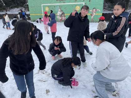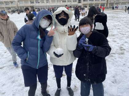 校庭に雪が積もり、みんなで雪遊びをしました。