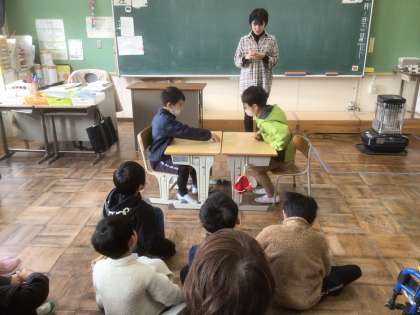 クラスのみんなが見守る中、それぞれのクラスの代表が決定戦に臨みました。