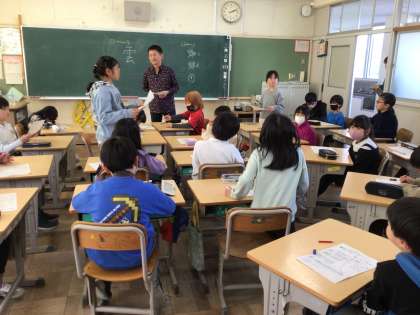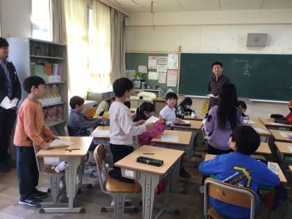 3年1組で模範授業をしていただいた後、先生たちも学びました。