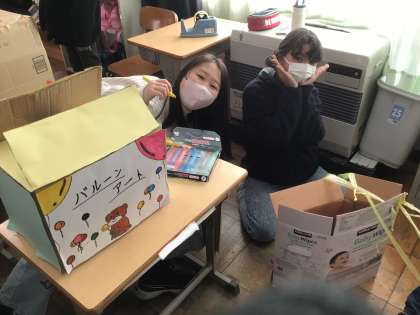 14日に行われる幼稚園との交流会に向けて、グループで協力して準備を進めています。