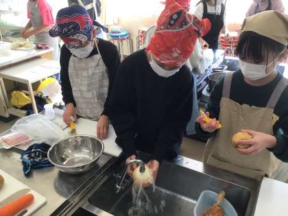 グループで協力して調理し、美味しいカレーライスができました。お米の炊き方も上手になりました。