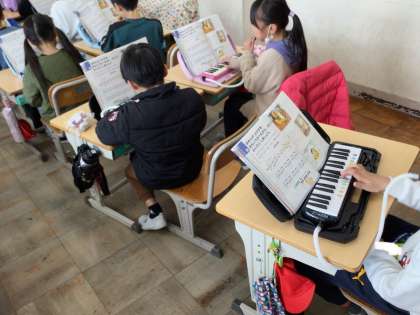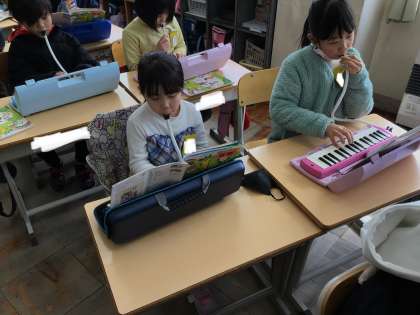 鍵盤ハーモニカで、小ぎつねを演奏しました。