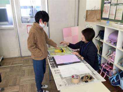 7・8・9・10組 上手に刷れたよ!ー5年図工ー 公開日 2024/03/01 更新日 2024/03/01 各学年から 5年生は、図工で彫り進み木版画に挑戦しています。 赤・黄・青の3色のインクを掘り進めるごとに印刷することで、 2色や3色の重なった色も生まれ、 カラフルな作品に仕上がります。 今回は1色目に黄色を選び、印刷しました。 これからさらに彫り進め、赤と青で印刷します。 素敵な作品に仕上がるのが楽しみです。