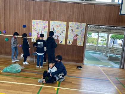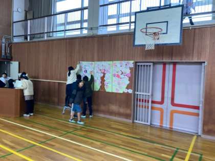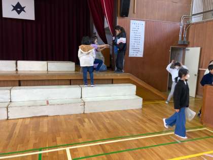 明日の卒業を祝う会の準備とリハーサルをしました。
