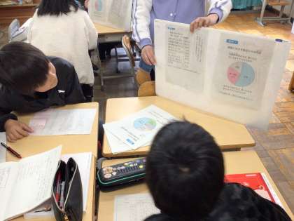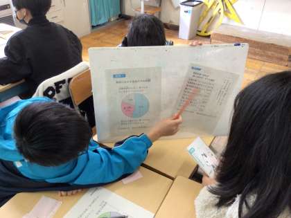 「食品ロス」について、資料を見て分かることと考えたことを班で伝え合いました。