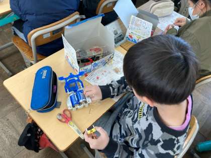実験を終えた子たちは、モーターづくり、車づくりを進めています。
