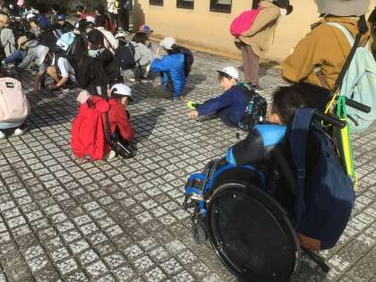 朝、4年生のみんなと一緒に棒の手広場に集合し