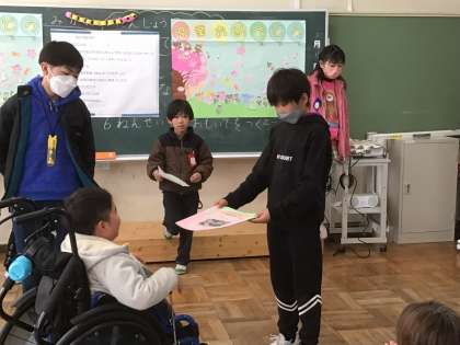代表の児童が6年生との思い出を伝えながら手渡しました。