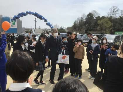 拍手で見送る5年生の中に5年間一緒に勉強した仲間を見つけて