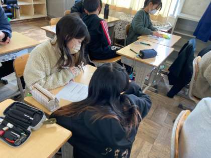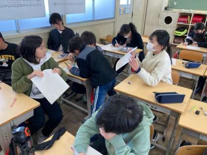 「明日へ続く道」という詩をもとに、みんなで感想や意見を出し合いました。
