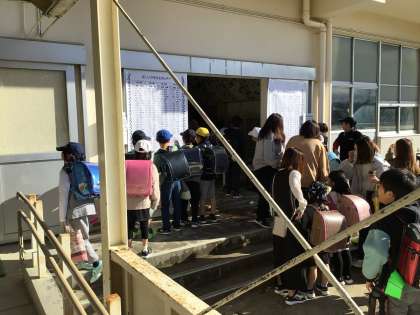 貼り出された名簿を見て、新しいクラスを確認して、教室に移動します。