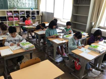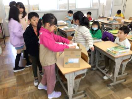 提出物を集めたり、新しい教科書に名前を書きました。