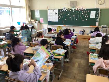 提出物を集めたり、新しい教科書の名前を書いたりしました。