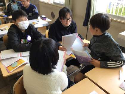 6年 道徳 それじゃダメじゃん 公開日 2024/04/10 更新日 2024/04/10 各学年から 今年度の中山小学校は「対話」を大切にして授業を進めていきます。今日の道徳では、グループで自分の意見を伝え合いました。