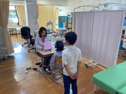聴力検査をしました。 静かに待っている姿勢もいいですね。