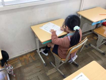 テストを実施しました。 3年生になって、初めてのテストでしたね。がんばりました。