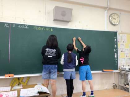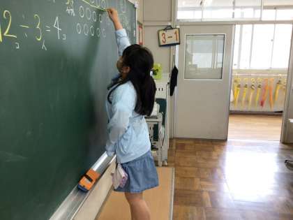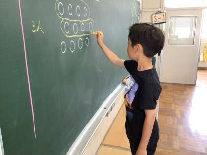 わり算が始まりました。 まずは、同じ数分ける式をつくる練習です。