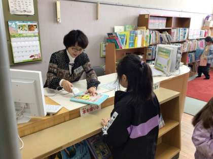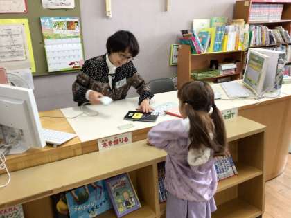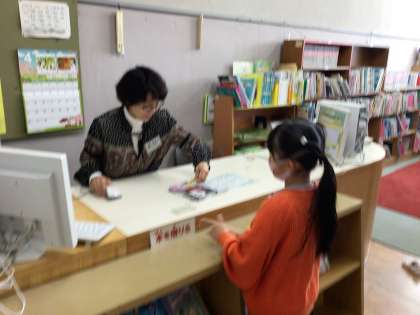 今日は司書さんに「司書のお仕事」「オススメの本の紹介」をしてもらった後、図書の貸し出しをしてもらいました。
