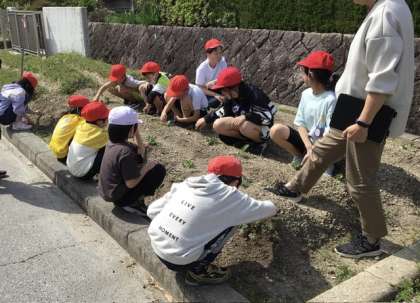 7・8・9組 すくすく育ってきたよ!ーじゃがいもの観察ー 公開日 2024/04/17 更新日 2024/04/17 各学年から 3月に植えたじゃがいもが芽を出しました。 天気も良かったので生活単元の学習で 観察会を行いました。 大きさや色だけでなく、葉の手触りや匂い じゃがいもの成長をいろいろな方法で確かめました。 「ざらざらしているよ」 「ちょっとくさいよ」 子ども達は、 感じたことを自分の言葉で上手に表現していました。