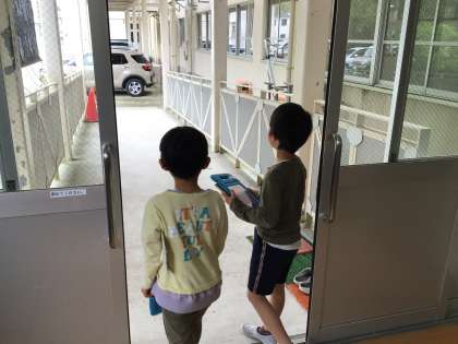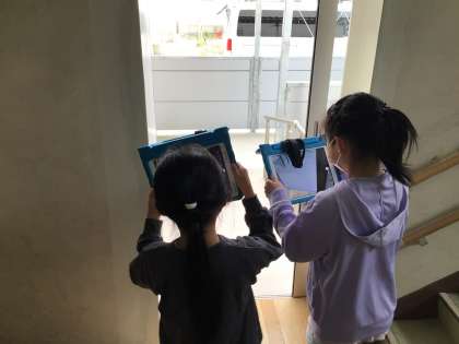 学校にある手すりやスロープを探しました。