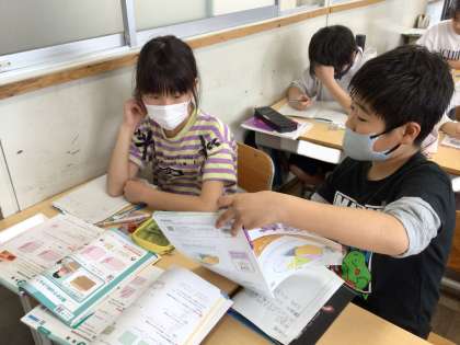 体積の求め方を考え、ペアで伝え合いました。