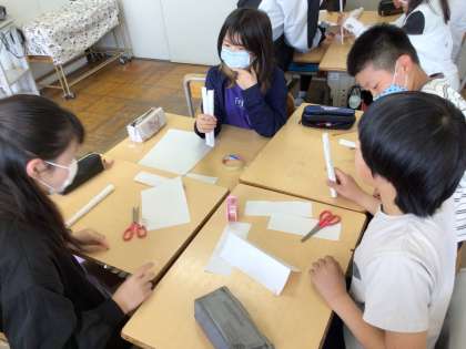 6年 図画工作 天まで届け 紙タワー3 公開日 2024/04/19 更新日 2024/04/19 各学年から グループでアイデアを共有しながら、限られた枚数の紙を使って天井まで届くタワーを作りました。