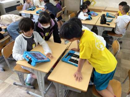 学校のふくしを探した結果をスライドにまとめて、グループで発表しました。