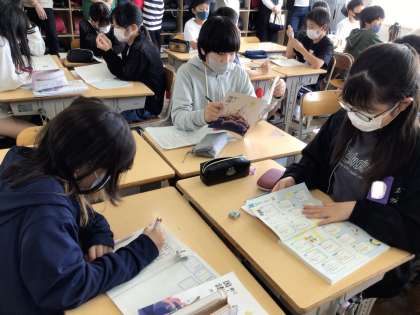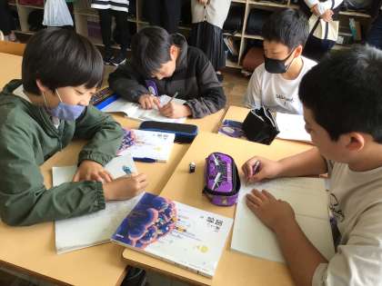 グループで協力して3文字の熟語を探し出し、その構成について話し合いました。