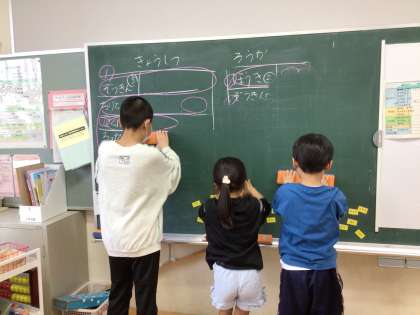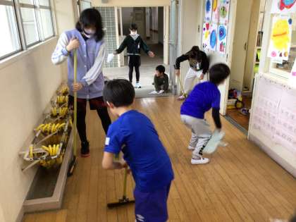 1年生の掃除が始まり、掃除の仕方を優しく教えてあげました。