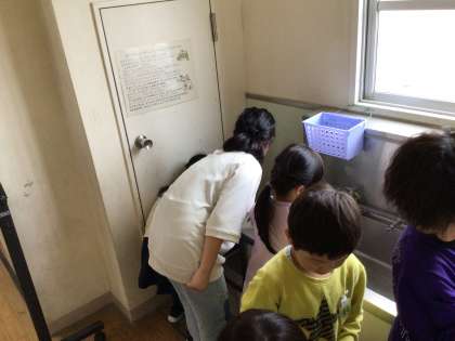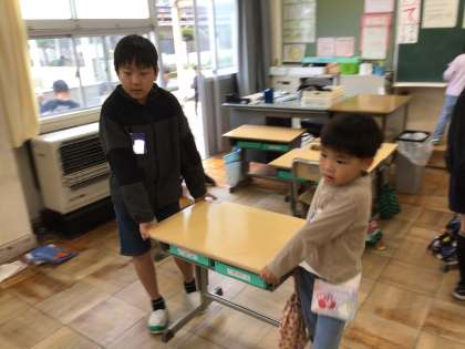 1年生の掃除が始まり、掃除の仕方を優しく教えてあげました。