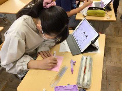 1年生につけてもらう名札を作りました。1年生に喜んでもらうために、どんなイラストを描いたらよいかを考えながら作りました。