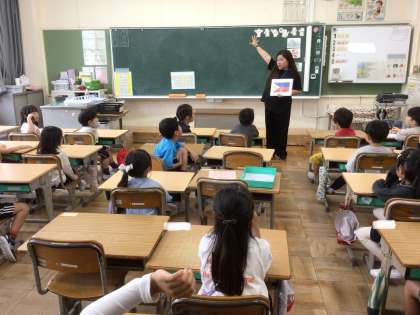 1年生 外国語活動 公開日 2024/04/23 更新日 2024/04/23 各学年から 初めての外国語活動に取り組みました。好きな色、好きな動物、好きなスポーツなどを英語を使って話すことができました。