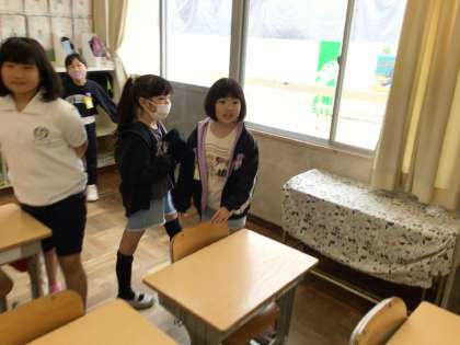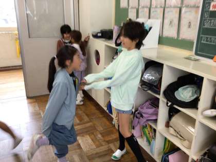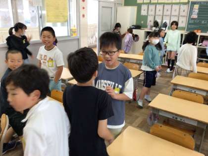 「Good morning!」「How are you?」を使って、みんなとあいさつをしました。