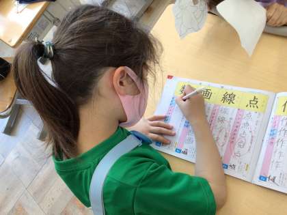 漢字練習を頑張っています。 姿勢をただしくして、書いています。