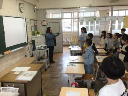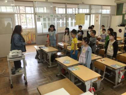 世界のあいさつについて、メリンダ先生と一緒に授業をしました。