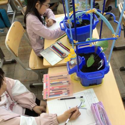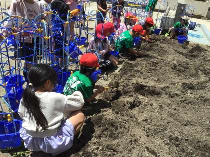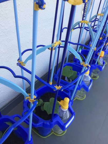 野菜の苗を一人一人植え替えました。大切に育てていきます。はやく大きくなぁれ!