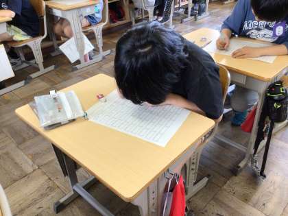 6年生になって初めての一斉テストがありました。1ヶ月間の学習の確認をします。